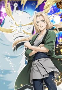 ซึนาเดะเป็นนินจาที่แข็งแกร่งมากในด้านพลัง มีวิชากระสุนวงจักร พลังช้างสารของซึนาเดะสามารถ ทำลายกำแพงหรือทำให้พื้นดินแตกเป็นหลุมระเบิดด้วยการอัด ชก หรือฟาดเท้าเพียงครั้งเดียว และเป็นนินจาแพทย์ที่ไม่มีวันตาย เธอสามารถชุบชีวิตตัวเองกี่ครั้งก็ได้ในการต่อสู้ และยังมีผนึกอักขระที่สามารถเปลี่ยนมาเป็นการฟึ้นฟูสภาพ ตัวเองได้ด้วย แต่การชุบชีวิตและฟื้นฟูตนเองนั้น จะมีผลข้างเคียงที่ทำให้อายุของเธอสั้นลงเรื่อยๆภายหลังจากโฮคาเงะรุ่นที่ 3 เสียชีวิต จิไรยะและนารูโตะ ได้ออกตามหาตัวซึนาเดะ เพื่อให้กลับมาเป็นโฮคาเงะรุ่นที่ 5 ของหมู่บ้านโคโนฮะ และรักษานินจาที่บาดเจ็บจากการต่อสู้กับหมู่บ้านซึนะกับโอโตะ